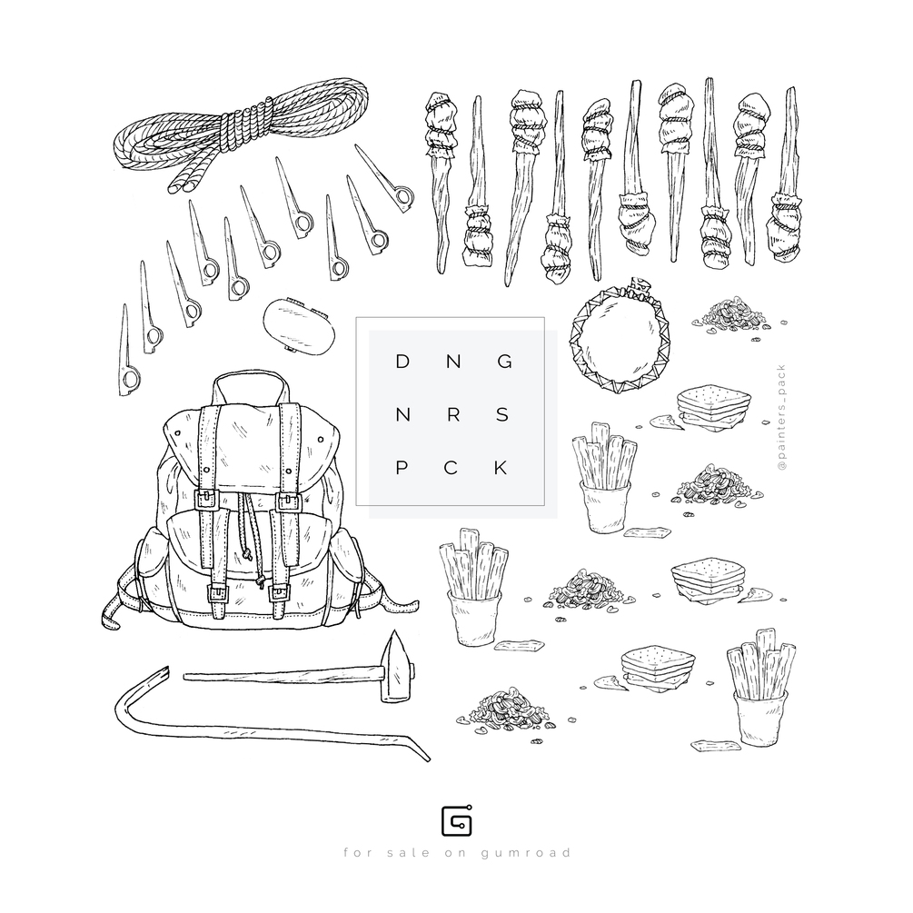 Hand-drawn Inventory Cards for the Dungeoneer's Pack of Dungeons and Dragons 5th Edition!